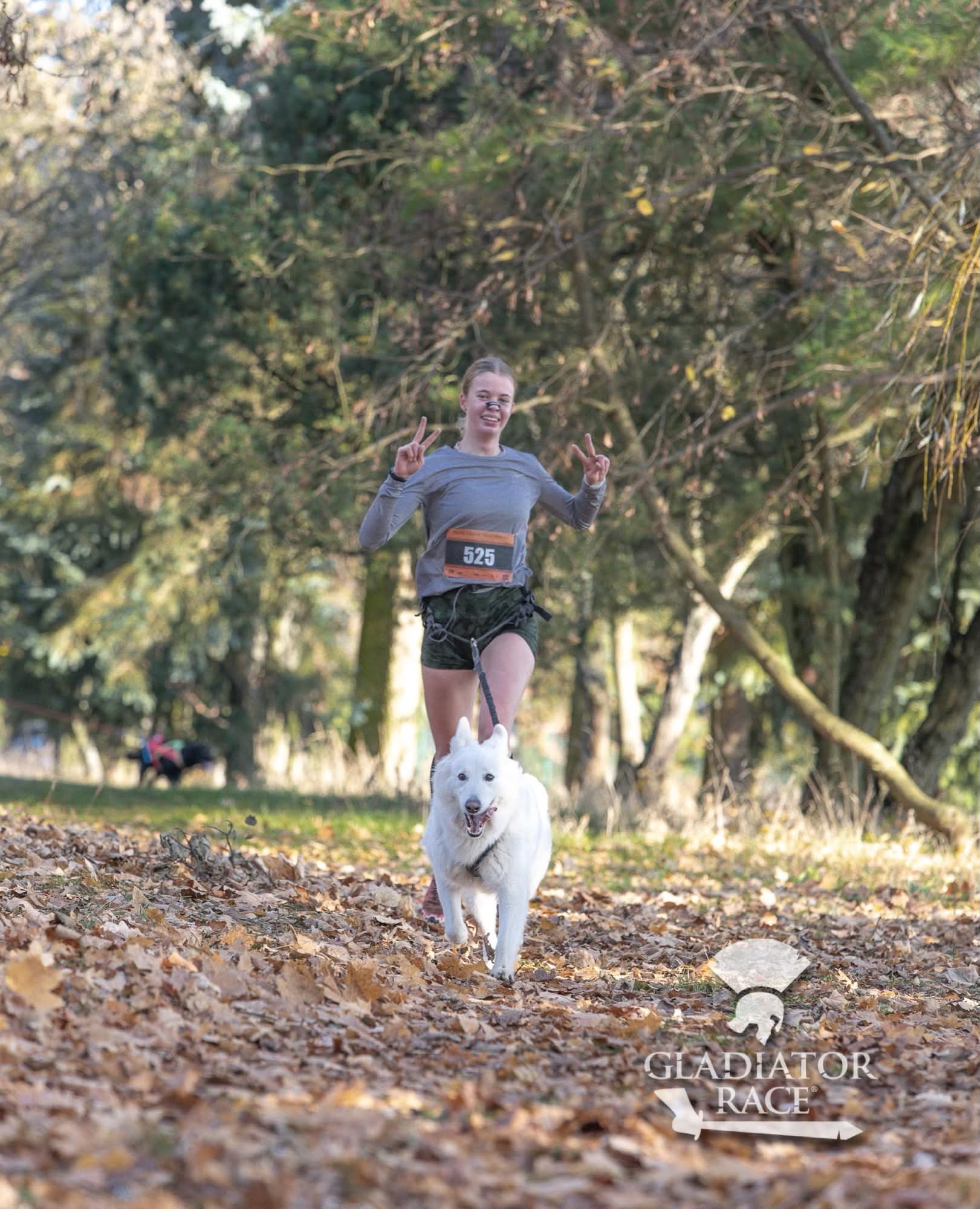 Gladiátor nepořádá jen překážkové závody, ale také čistě běžecké, jako byl tento. Takže tentokrát pro změnu jen běh se psem v zápřahu, žádné překážky. Byl to rychlý závod – sprint na 2,5 km, téměř s nulovým převýšením, který jsme uběhli asi za 10 minut. Trať závodu vedla nádherným prostředím barevného podzimního lázeňského parku. Lázně Velichovky jsou krásné místo a v barvách podzimu a za sluníčka neměly chybu.