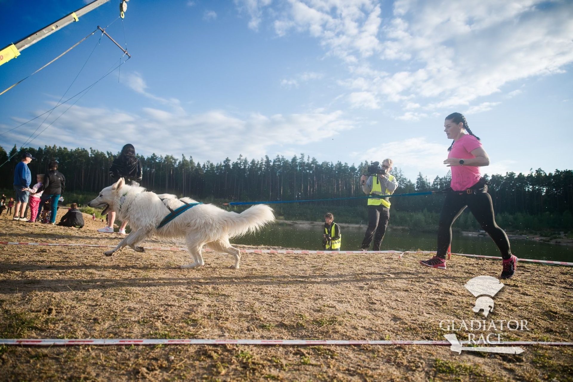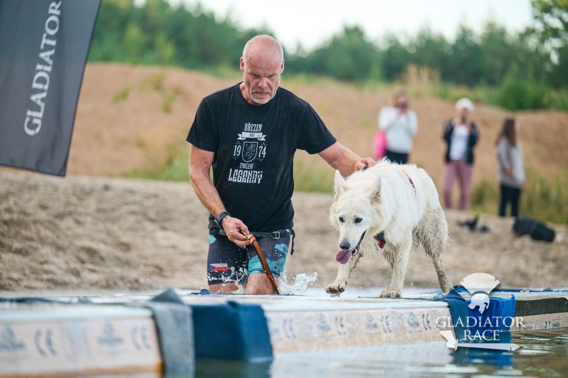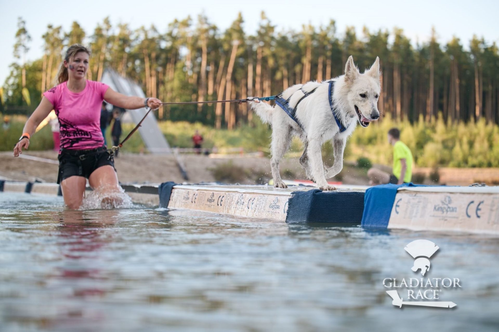 Gladiátor je jeden z nejtěžších překážkových závodů, které běháme, právě díky jeho překážkám. Vyžaduje velké množství odhodlání, síly a disciplíny k tomu, aby člověk překonal všechny překážky společně se psem a proběhl tratí od startu až do cíle. Tentokrát jsme se postavili na večerní závod kolem jezera na Marokánce. Start v 18,00, počasí tak akorát, trasa 3 km vodou, lesem a písčitými stezkami. Běžecky celkem snadný závod, žádné kopce ani záludnosti, krátký rychlý sprint, jenže…! To bychom si nesměli dát ten den ráno v Polsku velmi náročný závod na 10 km v extrémně těžkém a kopcovitém terénu. Hard dog race Wild byl přesný opak Gladiátora – překážky vcelku na pohodu, ale délkou a terénem mnohem větší brutalita. Jenomže medaile z Wildu nám ve sbírce chyběla, v Čechách se ještě nikdy nekonal, tak bylo jasno. Musíme zvládnout oba závody v jeden den. V pátek jsme se tak přesunuli s celou smečkou do Polska, ráno odběhli Wild a rychle se přesunuli na start Gladiátora k Hradci Králové. HDR Wild jsme tentokrát pojali nezávodně, běželi na pohodu všichni pohromadě (Erik + Frozen, Natálka + Bella a já s Amigou) a šetřili tak síly na večerní závod Gladiátor Race. Během pár hodin po doběhu ranního závodu jsme tak stáli na startu znovu, jen s jinými chlupáči. Erik zvolil Skazku, Natálka Vendettu a já Daiminku v den jejích 8. narozenin. Měla takovou radost, že zase po dlouhé době může závodit. Také jsme byli rádi, že jsme se tam mohli potkat s dalšími členy našeho týmu NIKTEL WHITE WARRIORS. Běželo se kupodivu celkem hezky, ale únava z ranního závodu se na výkonech určitě podepsala. Každý jsme absolvovali i nějaký ten handicap ze nepřekonané překážky a doběhli jsme na 4. + 5. a 6. místě. Ale ten pocit ze zdolané další výzvy byl k nezaplacení.