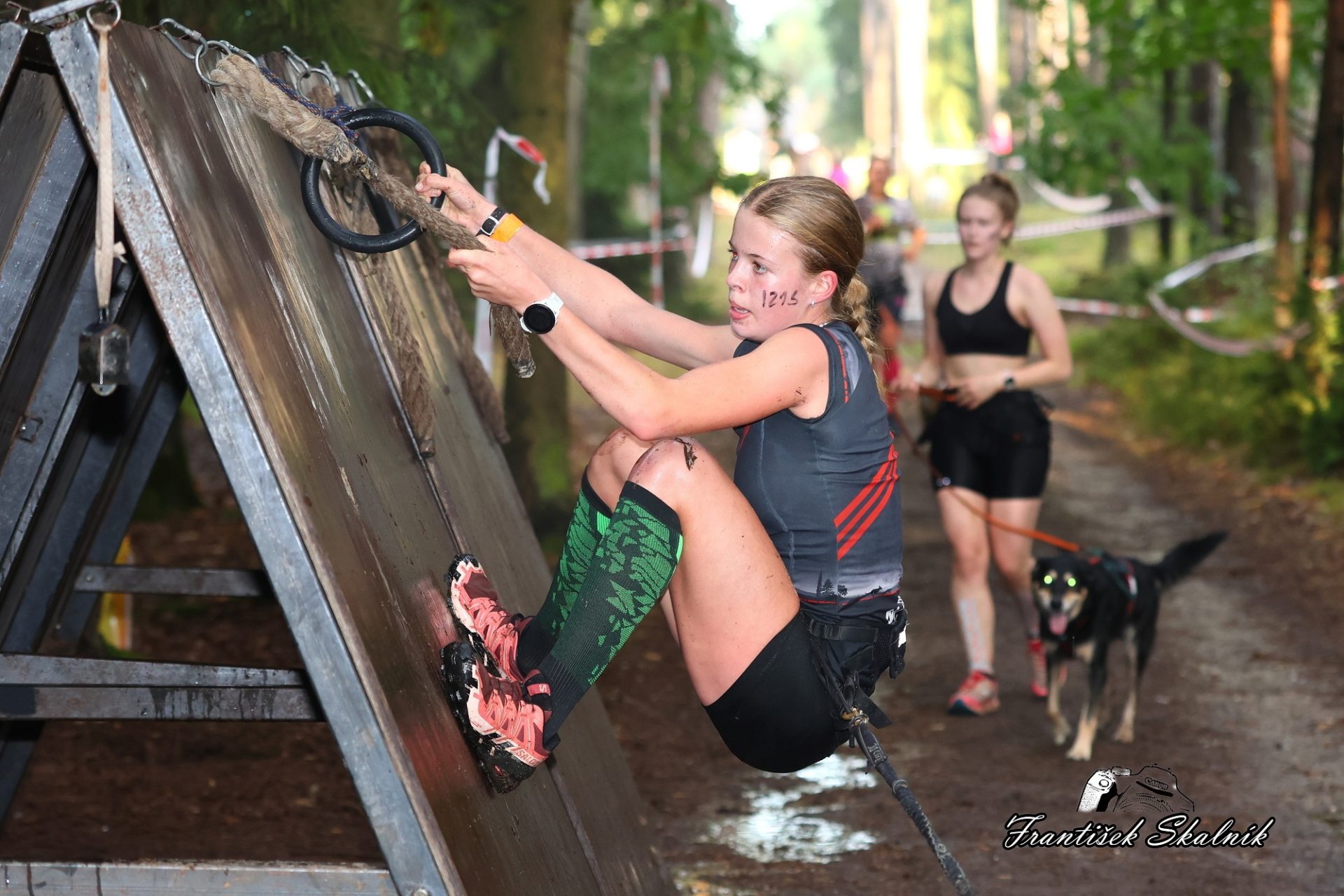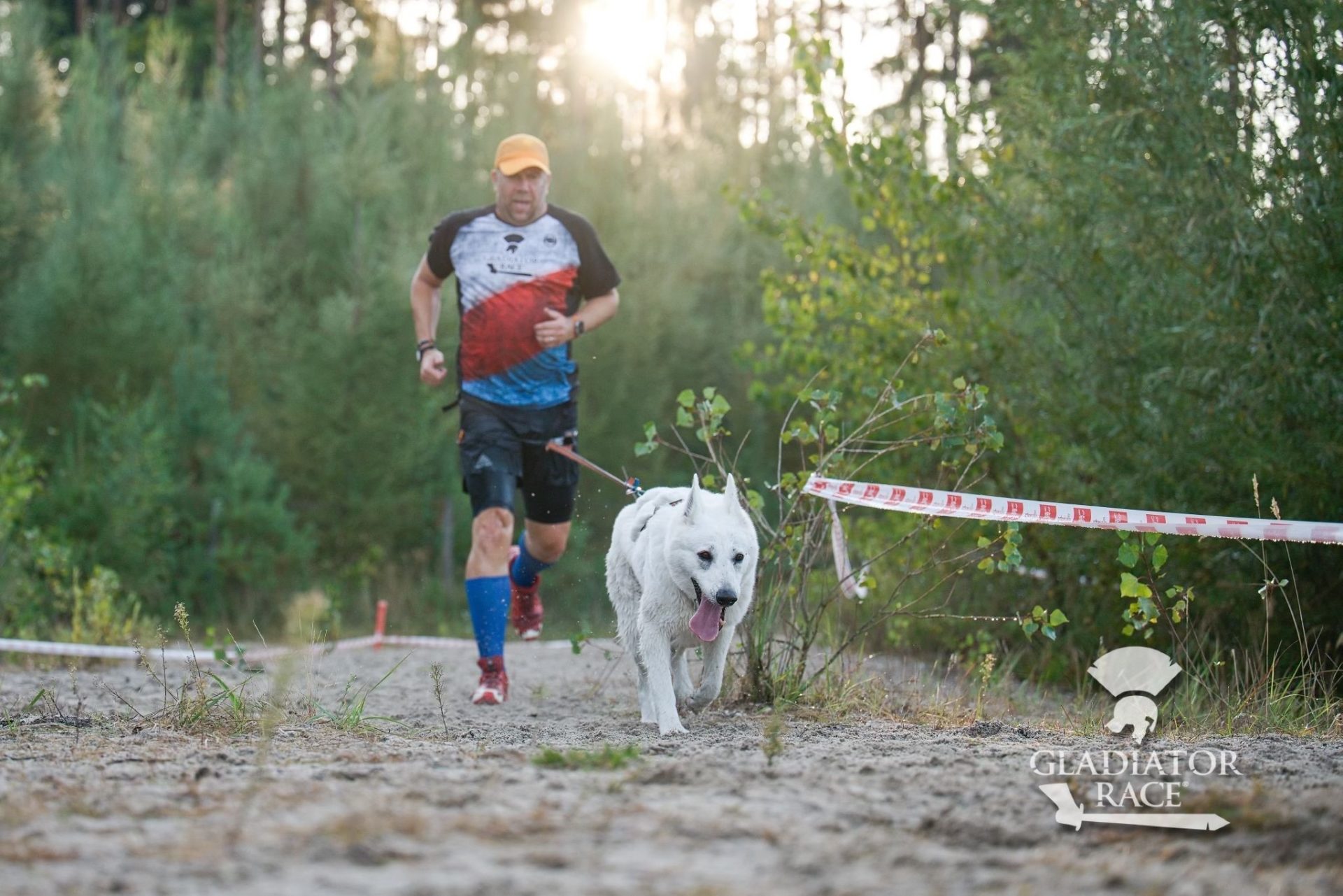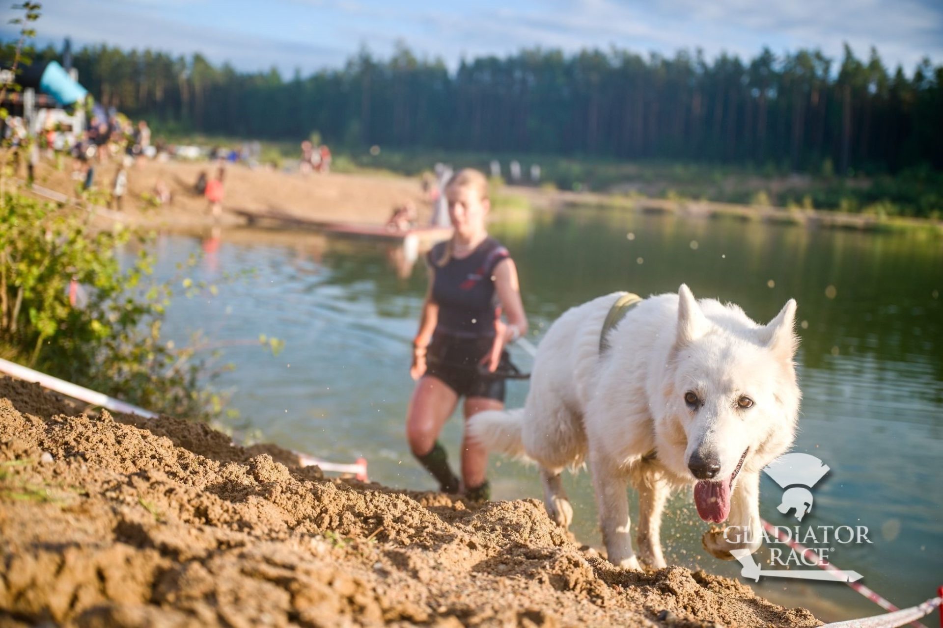 Gladiátor je jeden z nejtěžších překážkových závodů, které běháme, právě díky jeho překážkám. Vyžaduje velké množství odhodlání, síly a disciplíny k tomu, aby člověk překonal všechny překážky společně se psem a proběhl tratí od startu až do cíle. Tentokrát jsme se postavili na večerní závod kolem jezera na Marokánce. Start v 18,00, počasí tak akorát, trasa 3 km vodou, lesem a písčitými stezkami. Běžecky celkem snadný závod, žádné kopce ani záludnosti, krátký rychlý sprint, jenže…! To bychom si nesměli dát ten den ráno v Polsku velmi náročný závod na 10 km v extrémně těžkém a kopcovitém terénu. Hard dog race Wild byl přesný opak Gladiátora – překážky vcelku na pohodu, ale délkou a terénem mnohem větší brutalita. Jenomže medaile z Wildu nám ve sbírce chyběla, v Čechách se ještě nikdy nekonal, tak bylo jasno. Musíme zvládnout oba závody v jeden den. V pátek jsme se tak přesunuli s celou smečkou do Polska, ráno odběhli Wild a rychle se přesunuli na start Gladiátora k Hradci Králové. HDR Wild jsme tentokrát pojali nezávodně, běželi na pohodu všichni pohromadě (Erik + Frozen, Natálka + Bella a já s Amigou) a šetřili tak síly na večerní závod Gladiátor Race. Během pár hodin po doběhu ranního závodu jsme tak stáli na startu znovu, jen s jinými chlupáči. Erik zvolil Skazku, Natálka Vendettu a já Daiminku v den jejích 8. narozenin. Měla takovou radost, že zase po dlouhé době může závodit. Také jsme byli rádi, že jsme se tam mohli potkat s dalšími členy našeho týmu NIKTEL WHITE WARRIORS. Běželo se kupodivu celkem hezky, ale únava z ranního závodu se na výkonech určitě podepsala. Každý jsme absolvovali i nějaký ten handicap ze nepřekonané překážky a doběhli jsme na 4. + 5. a 6. místě. Ale ten pocit ze zdolané další výzvy byl k nezaplacení.