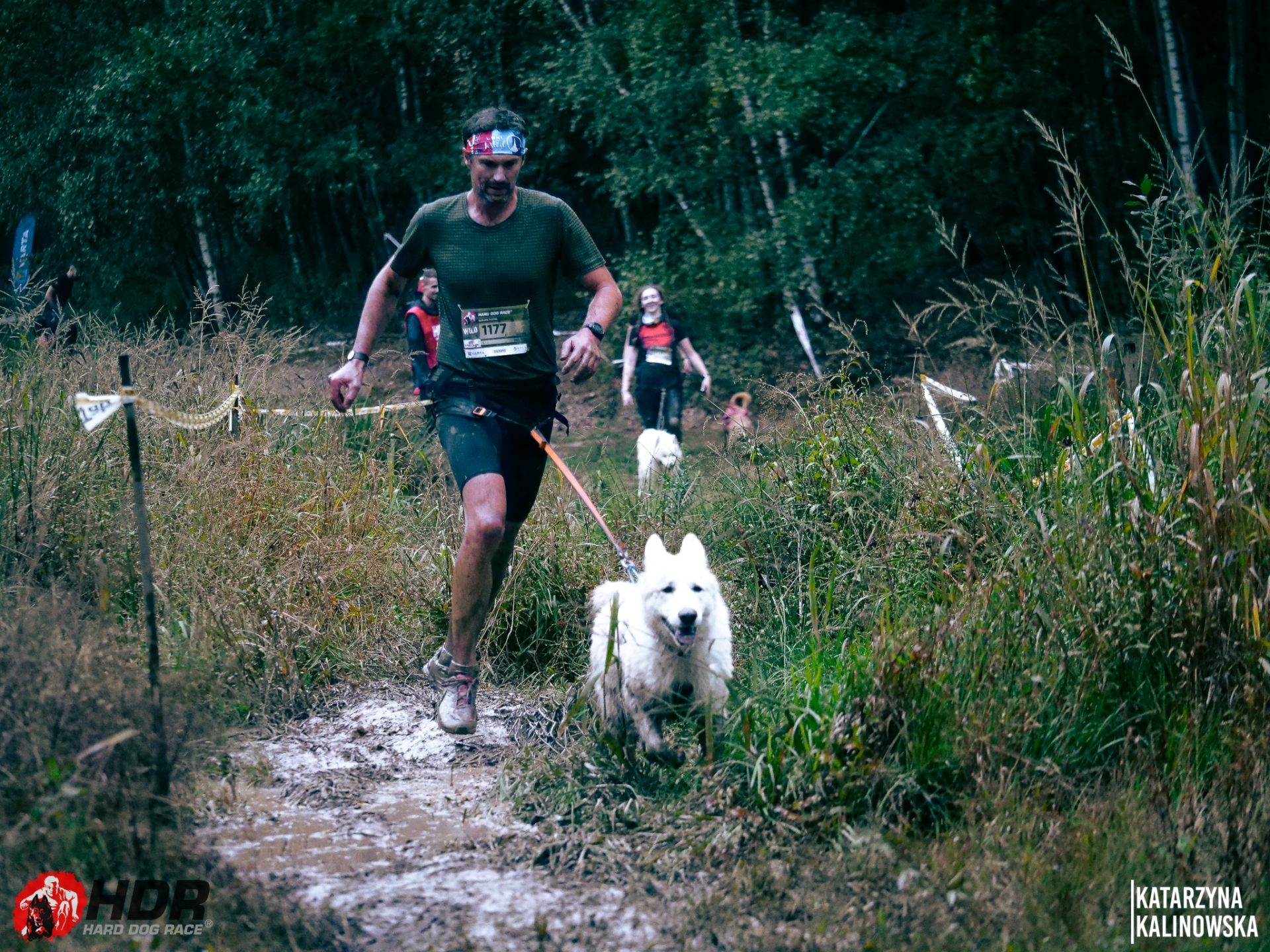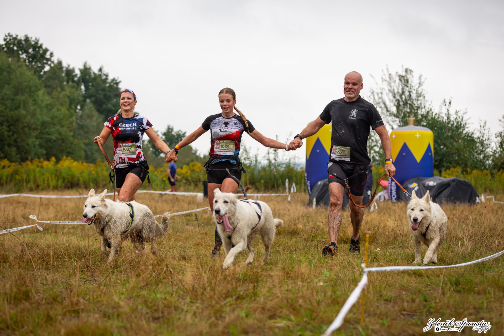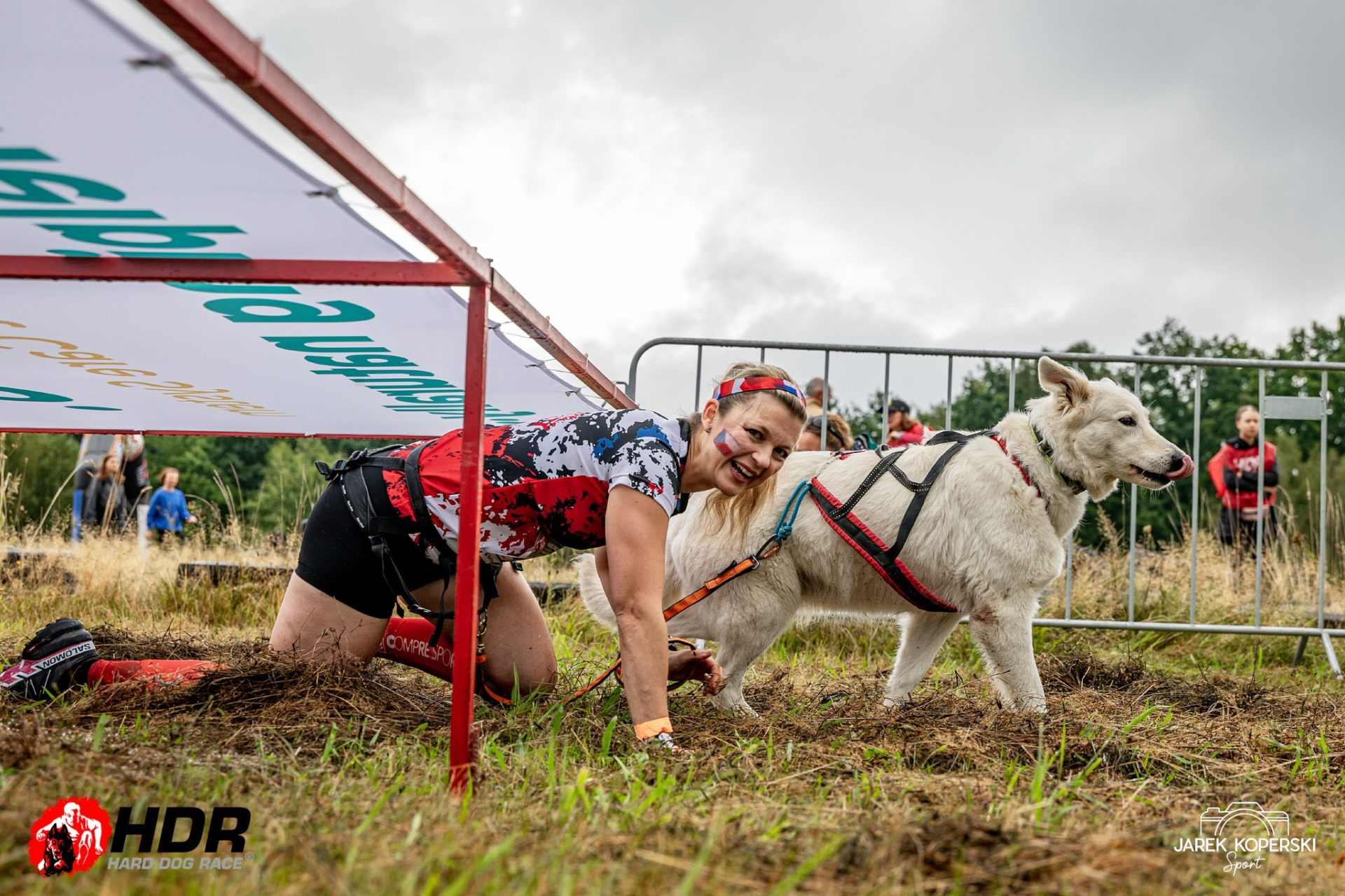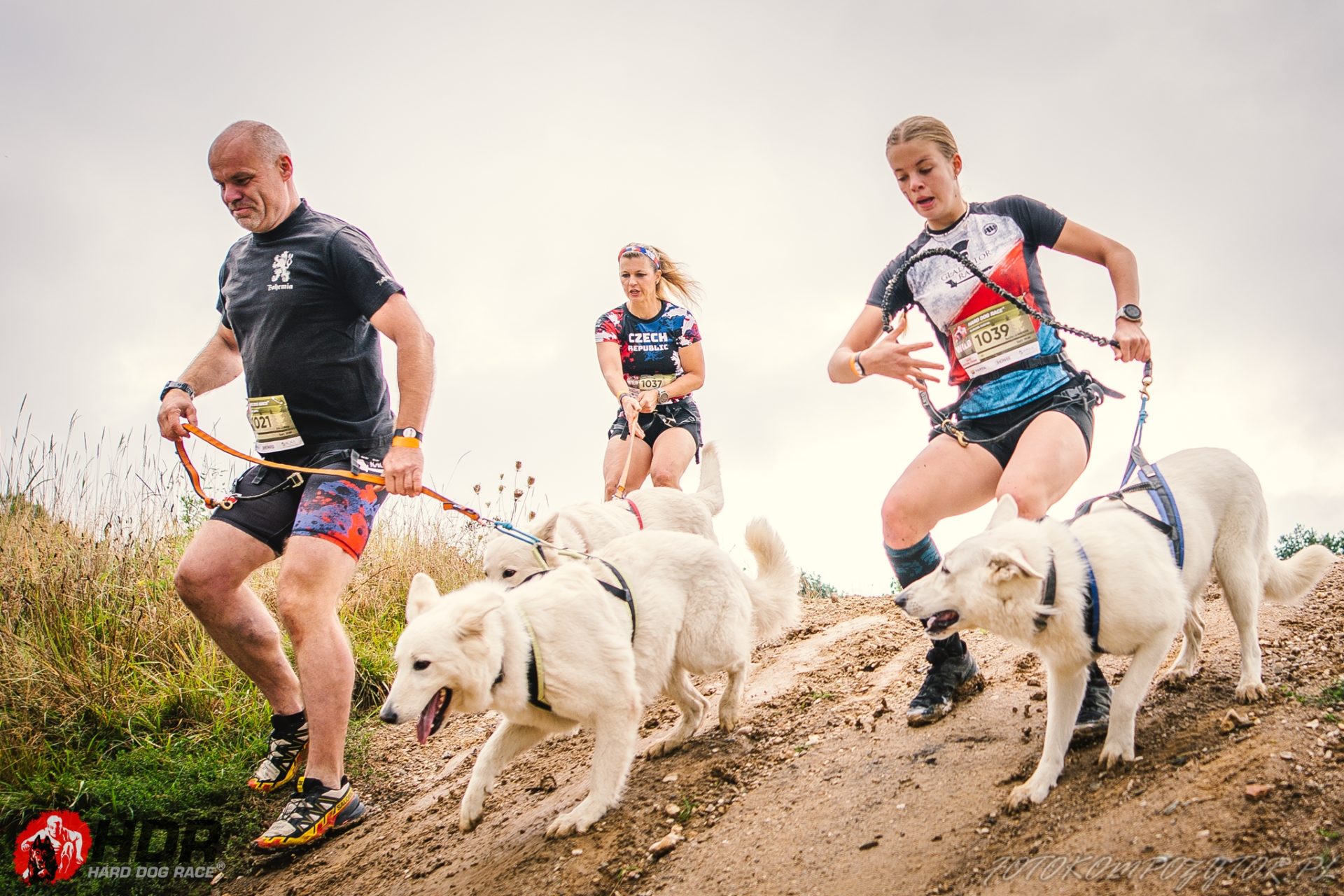 Náročnější a divočejší varianta závodu HDR, tzv. Wild. Původně plánovaný na 12 km, nakonec zkrácený „jen“ na 10 km + 22 překážek, ale i tak dostatečně výživný, náročná a prostě HARD. Po celonočním dešti byla motocrossová trať jedna velká blátivá skluzavka. Hned po startu mega krpál dolů jako dělaný na zlámání všech kostí v těle. Vyžadovalo to hodně sil přemluvit natěšené psy, že hned na startu musíme brzdit a pomalu sejít pár kopců. Pak různé houpačky nahoru a dolů, voda, bláto, překážky a zase voda a bláto a tak pořád dokola. Jak jsme již psali, toto byl první z dvou závodů v ten den, tak jsme se i vzhledem k terénu rozhodli ho běžet volně a jít so ho prostě pro jednou taky jen užít. A užili – my i psí parťáci. Bylo to parádní, ale vskutku náročné. Také proto je na tento závod zvýšený minimální požadovaný věk závodníka na 18 let. Tohle už není procházka, ale závod pro opravdu zdatné jedince, po těle i po duši. Jenže Natálce je 14, ale moc ho chtěla běžet. Tak jsme požádali pořadatele o „divokou kartu“. Doložili jsme její bohatou běžeckou kariéru a zkušenosti nejen z překážkových závodů a poskytli záruky, aby vše proběhlo hladce a především bezpečně. K naší velké radosti jsme od polských i maďarských pořadatelů dostali svolení startovat všichni společně, tedy i s Natálkou. O to víc jsme si to mohli užít a doběh všichni spolu ruku v ruce byl jen třešničkou na dortu. Nakonec jsme byli velmi překvapeni, že i v lehčím tempu jsme mezi ženami skončili na 7. + 8. místě ze 102 žen a Erik 16. z 63 mužů. Potkali jsme tam i nás odchov Faylu Fury Niktel s naším týmovým kolegou Jirkou. Mezi muži skončili na 5. místě. Gratulujeme!