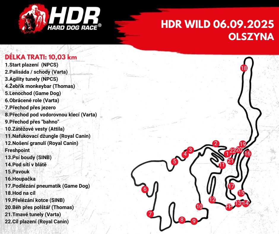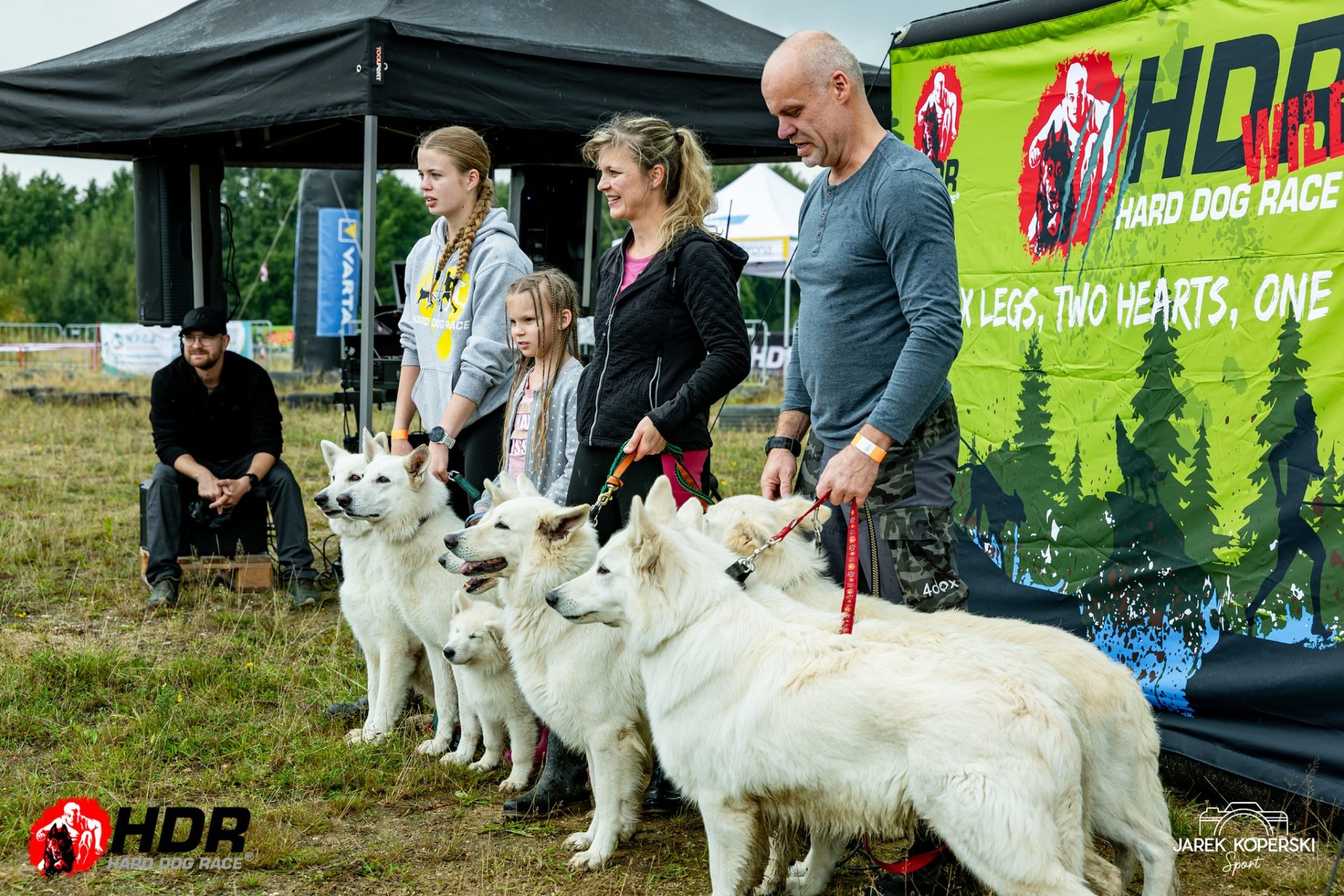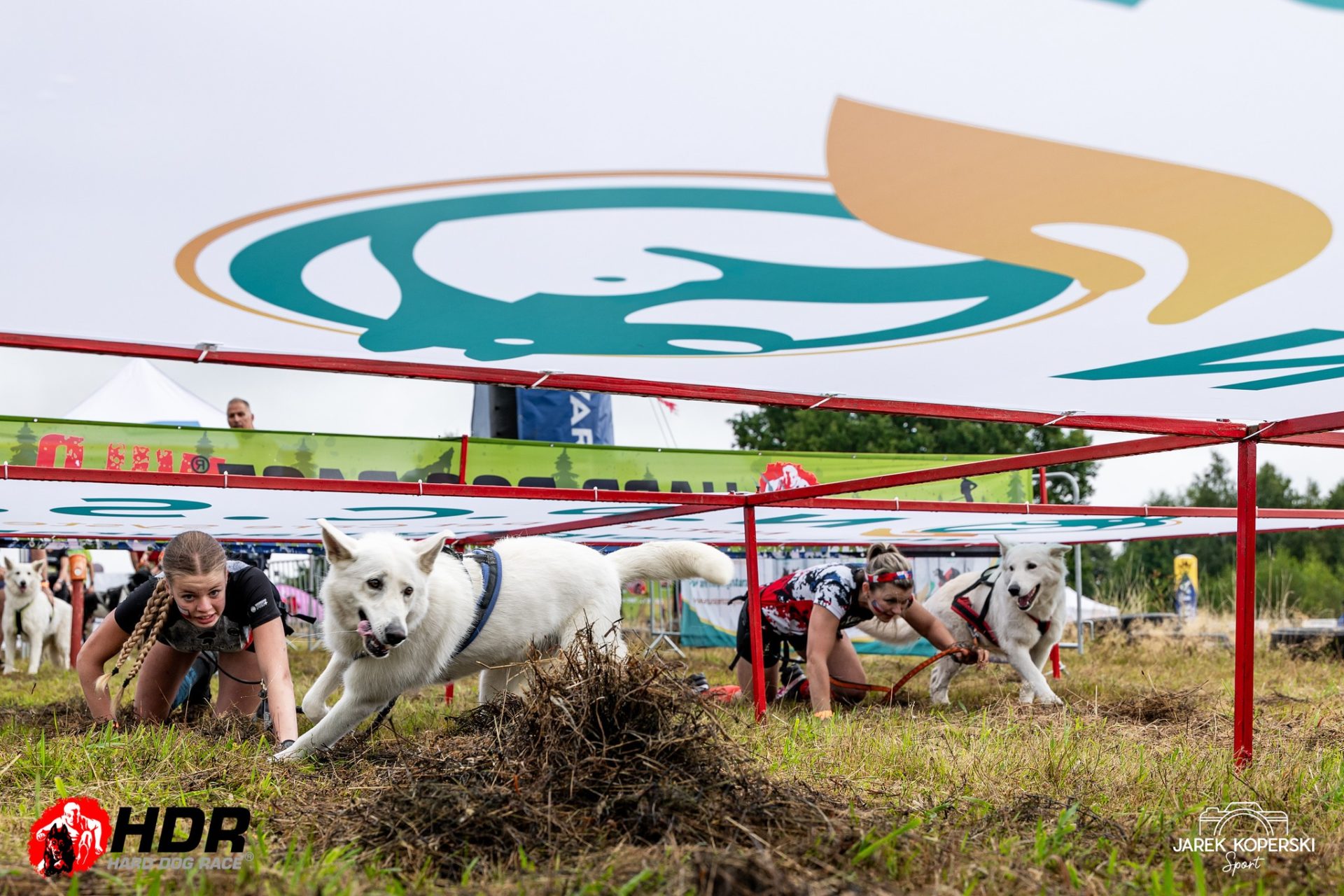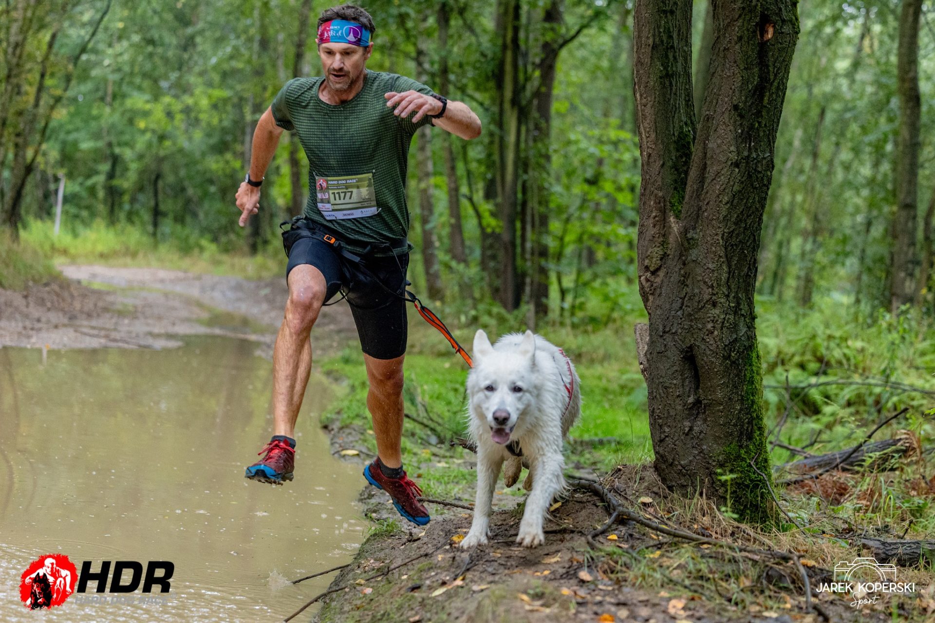 Náročnější a divočejší varianta závodu HDR, tzv. Wild. Původně plánovaný na 12 km, nakonec zkrácený „jen“ na 10 km + 22 překážek, ale i tak dostatečně výživný, náročná a prostě HARD. Po celonočním dešti byla motocrossová trať jedna velká blátivá skluzavka. Hned po startu mega krpál dolů jako dělaný na zlámání všech kostí v těle. Vyžadovalo to hodně sil přemluvit natěšené psy, že hned na startu musíme brzdit a pomalu sejít pár kopců. Pak různé houpačky nahoru a dolů, voda, bláto, překážky a zase voda a bláto a tak pořád dokola. Jak jsme již psali, toto byl první z dvou závodů v ten den, tak jsme se i vzhledem k terénu rozhodli ho běžet volně a jít so ho prostě pro jednou taky jen užít. A užili – my i psí parťáci. Bylo to parádní, ale vskutku náročné. Také proto je na tento závod zvýšený minimální požadovaný věk závodníka na 18 let. Tohle už není procházka, ale závod pro opravdu zdatné jedince, po těle i po duši. Jenže Natálce je 14, ale moc ho chtěla běžet. Tak jsme požádali pořadatele o „divokou kartu“. Doložili jsme její bohatou běžeckou kariéru a zkušenosti nejen z překážkových závodů a poskytli záruky, aby vše proběhlo hladce a především bezpečně. K naší velké radosti jsme od polských i maďarských pořadatelů dostali svolení startovat všichni společně, tedy i s Natálkou. O to víc jsme si to mohli užít a doběh všichni spolu ruku v ruce byl jen třešničkou na dortu. Nakonec jsme byli velmi překvapeni, že i v lehčím tempu jsme mezi ženami skončili na 7. + 8. místě ze 102 žen a Erik 16. z 63 mužů. Potkali jsme tam i nás odchov Faylu Fury Niktel s naším týmovým kolegou Jirkou. Mezi muži skončili na 5. místě. Gratulujeme!